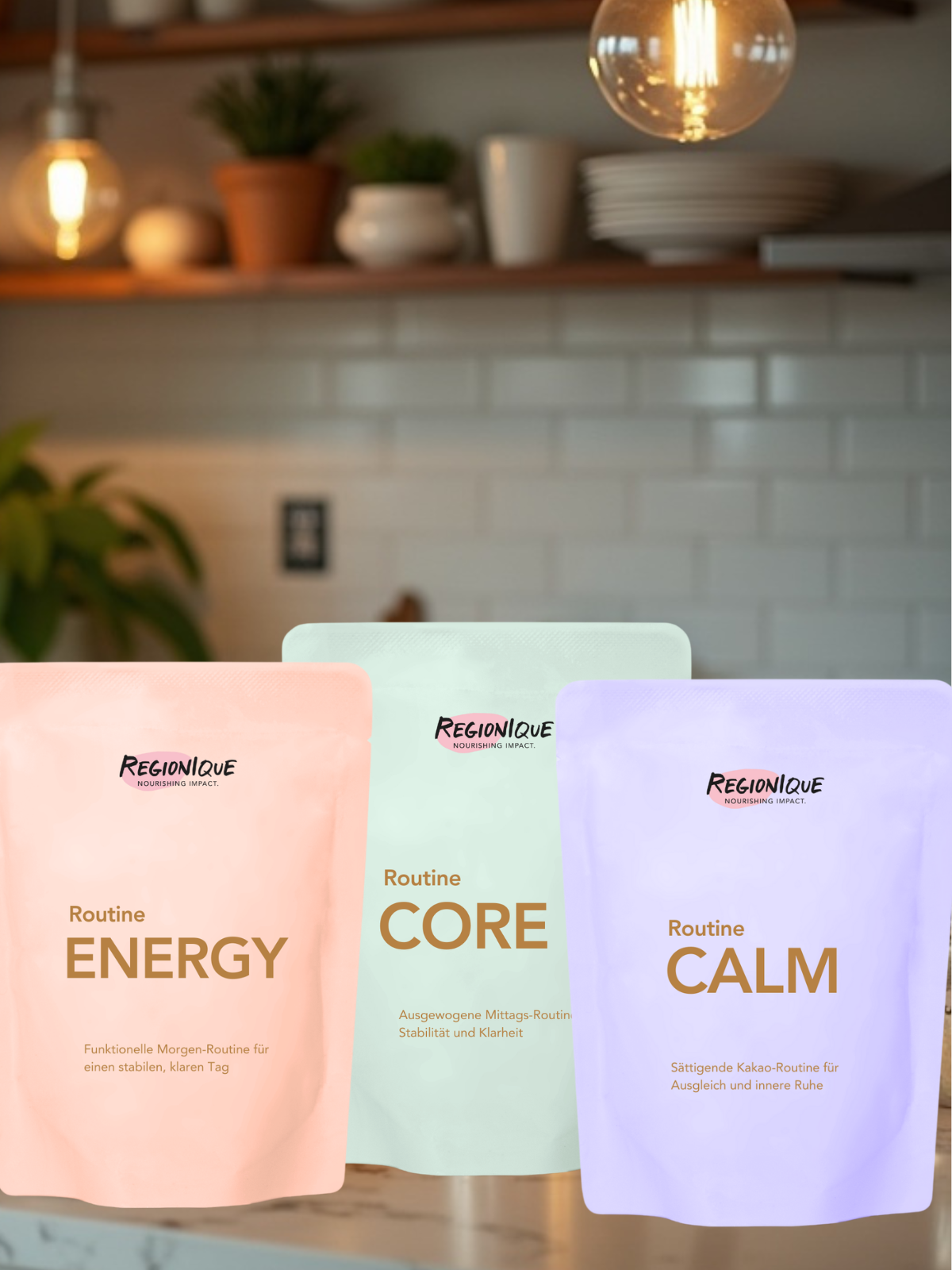 Der 5-Tage-Reset begleitet dich mit drei funktionellen Routinen durch den Tag: ENERGY am Morgen, CORE am Mittag und CALM am Nachmittag. So entsteht eine einfache Struktur, die alltagstauglich ist und deinem Körper genau dann Unterstützung gibt, wenn sie sinnvoll ist.